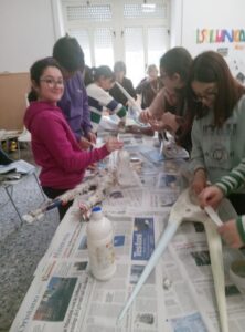 L’esito scenico del laboratorio teatrale di Ghilarza si svolgerà il 16 maggio alla necropoli di Ispiluncas di pomeriggio,  all’aperto, con le domus sullo sfondo, in uno scenario suggestivo. Il gruppo , composto da alunni provenienti da classi diverse, ha conosciuto qualche ritiro e non tutti saranno presenti allo spettacolo finale. Parte del laboratorio è stato dedicato alla costruzione di oggetti di scena: maschere di cartapesta e bastoni di legno rivestiti di corda etc. e il lavoro manuale ha permesso l’inclusione di tutti i ragazzi, anche di quelli con difficoltà. Le maschere, elemento suggestivo assai caro alla cultura sarda, diventeranno strumento scenico e verranno indossate da alcuni attori, che sperimenteranno come il nascondimento dietro le maschere possa diventare liberatorio e possa contribuire ad acquisire una maggiore sicurezza di sé. Durante le prove il clima è stato collaborativo e di grande partecipazione. Il laboratorio teatrale, assieme alle escursioni, è stato considerato il momento più bello dell’intero percorso progettuale. Durante lo spettacolo i giovani attori canteranno anche le canzoni rap da loro composte, assieme agli studenti liceali, e saranno divisi in tre gruppi : i narratori, le Janas e i custodi. La suggestione delle leggende sulle misteriose Janas , protagoniste di tante storie che ci offre la tradizione popolare della Sardegna, sarà il fil rouge dello spettacolo, in cui avranno spazio anche i testi scritti dai ragazzi e rielaborati dalle attrici e registe de “Le voci di Astarte” Sabrina Barlini e Gloria Uccheddu. Verranno realizzati anche semplici costumi, riciclando materiali ed oggetti reperiti nelle famiglie in modo che possa esserci una continuità fra la preistoria e la tradizione rurale sarda. Anche i teli realizzati dai ragazzi durante un anno di lavoro sulle diverse necropoli visitate avranno un ruolo introduttivo allo spettacolo e testimonieranno il percorso realizzato.